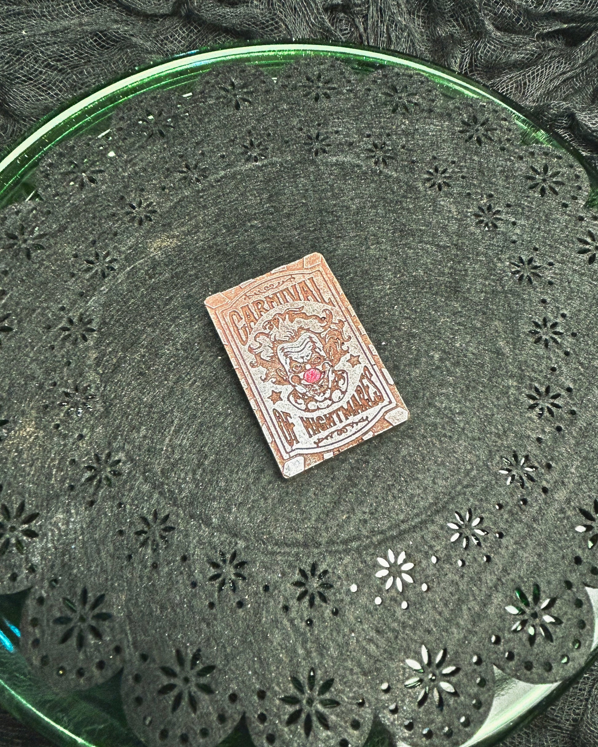 This frightful clown is inviting you to a carnival...will you go? This small plaquette is made with pure Belgian couverture chocolate and individually packaged.