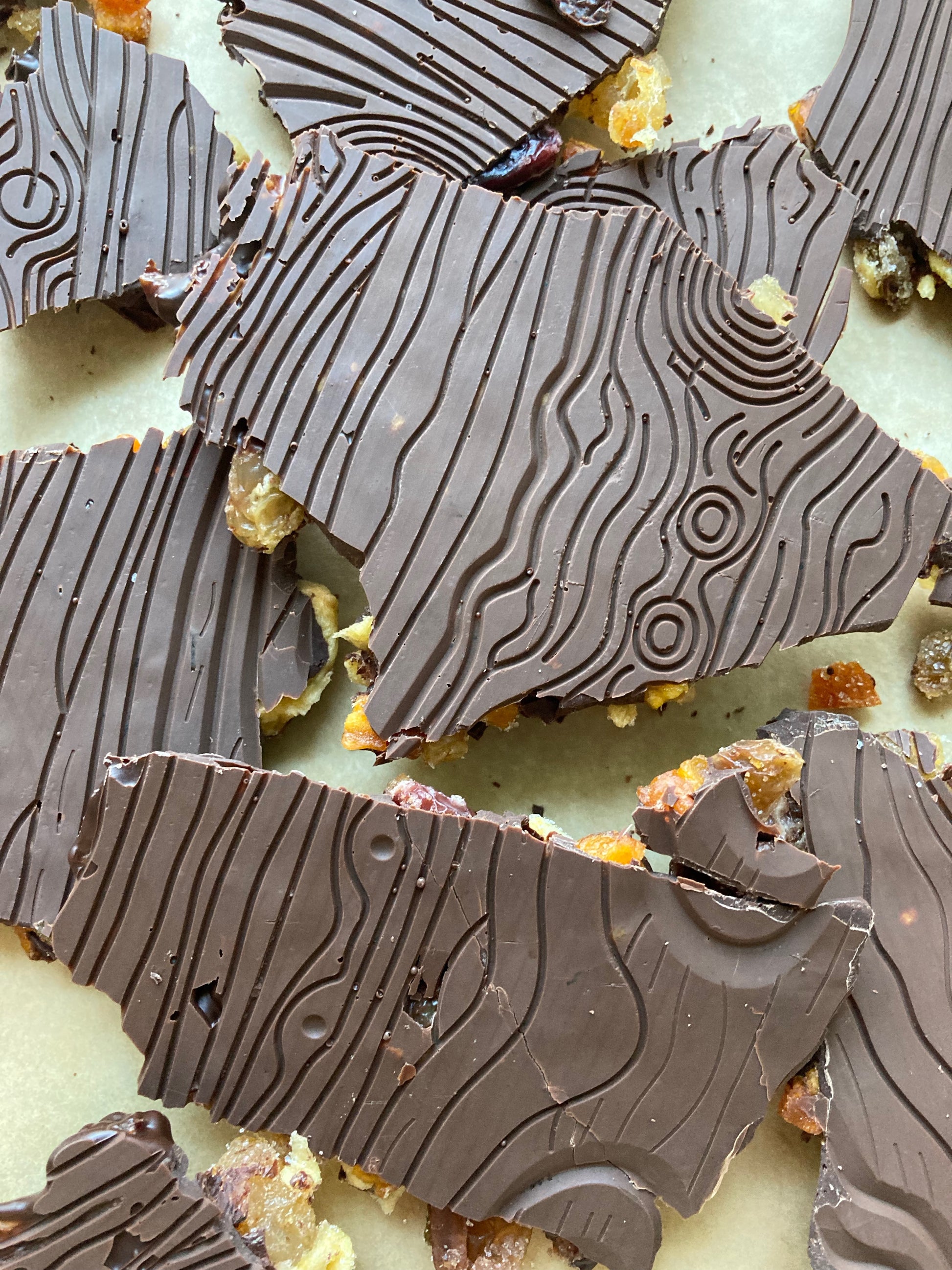 Roasted whole & half cashews are mixed with pure dark or milk chocolate and topped with a sprinkle of pink Himalayan sea salt.