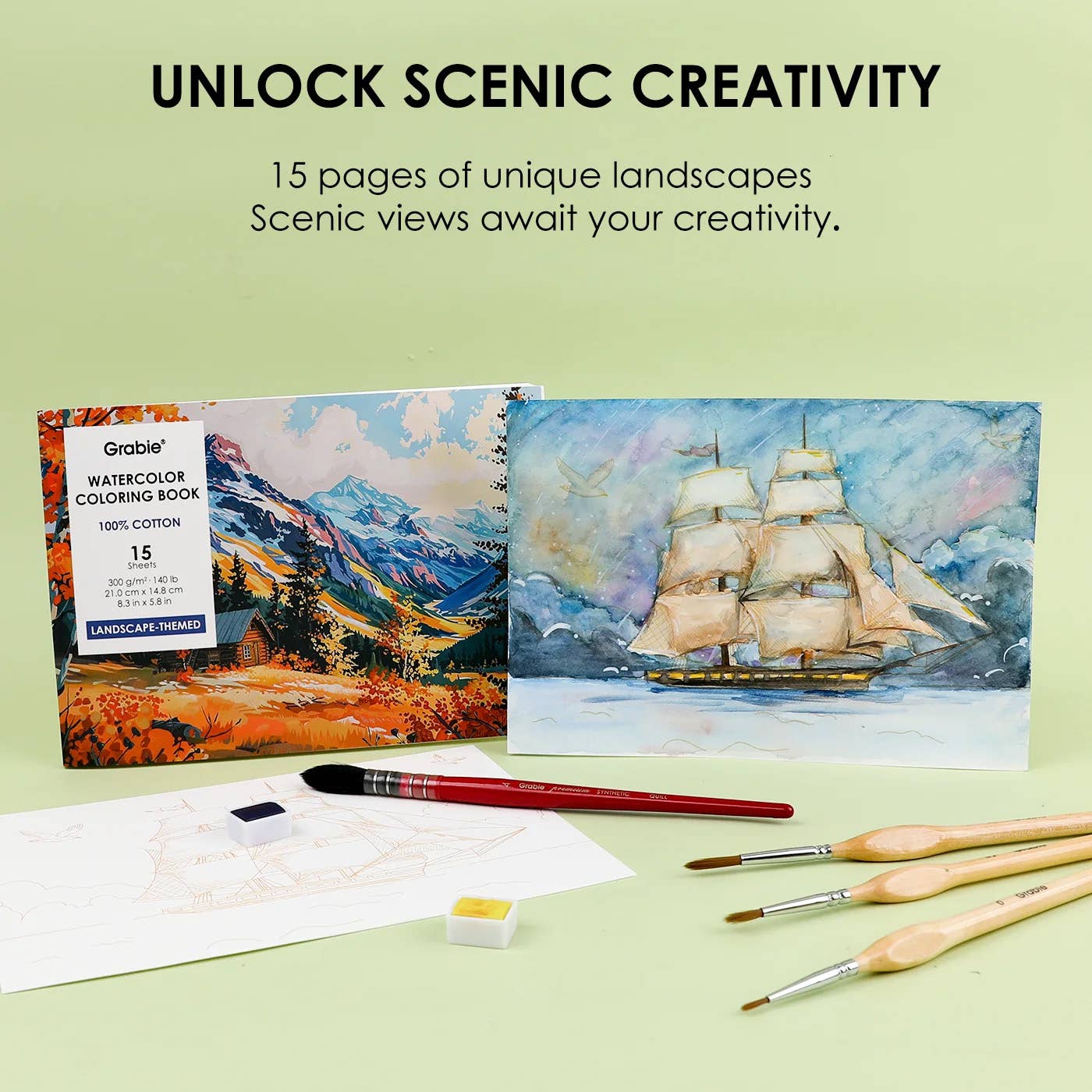 PERFECT PAIRING FOR NATURE LOVERS – Thoughtfully designed, this set features a 12-color watercolor pocket set, curated with shades that capture the essence of nature, and a 15-sheet, 140LB landscape-themed watercolor coloring book. Explore the serenity of landscapes and bring your imagination to life.