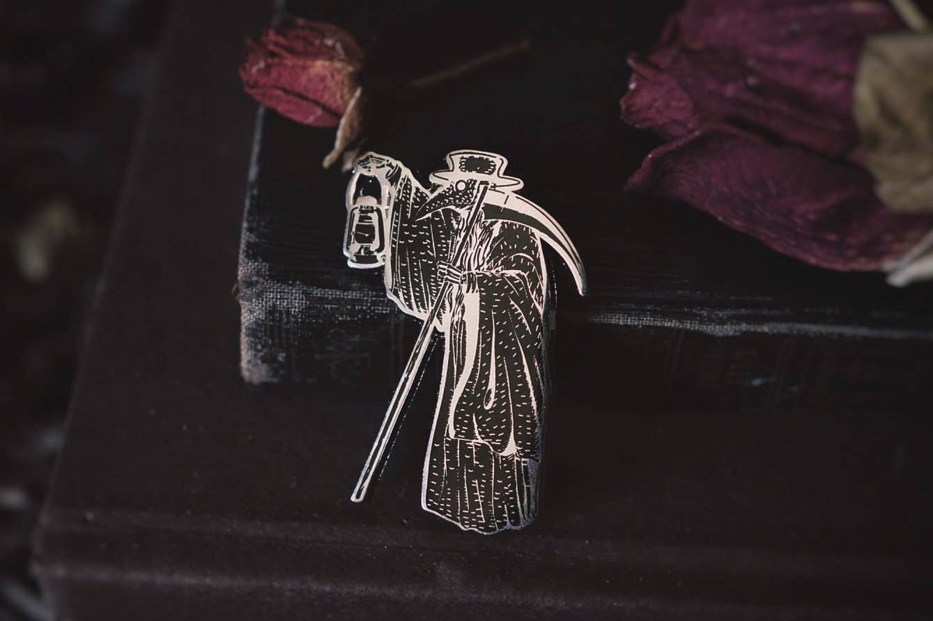 An homage to Oingo Boingo, tarot [The Hermit], Led Zeppelin posters, plague doctors, and of course - the Grim Reaper.