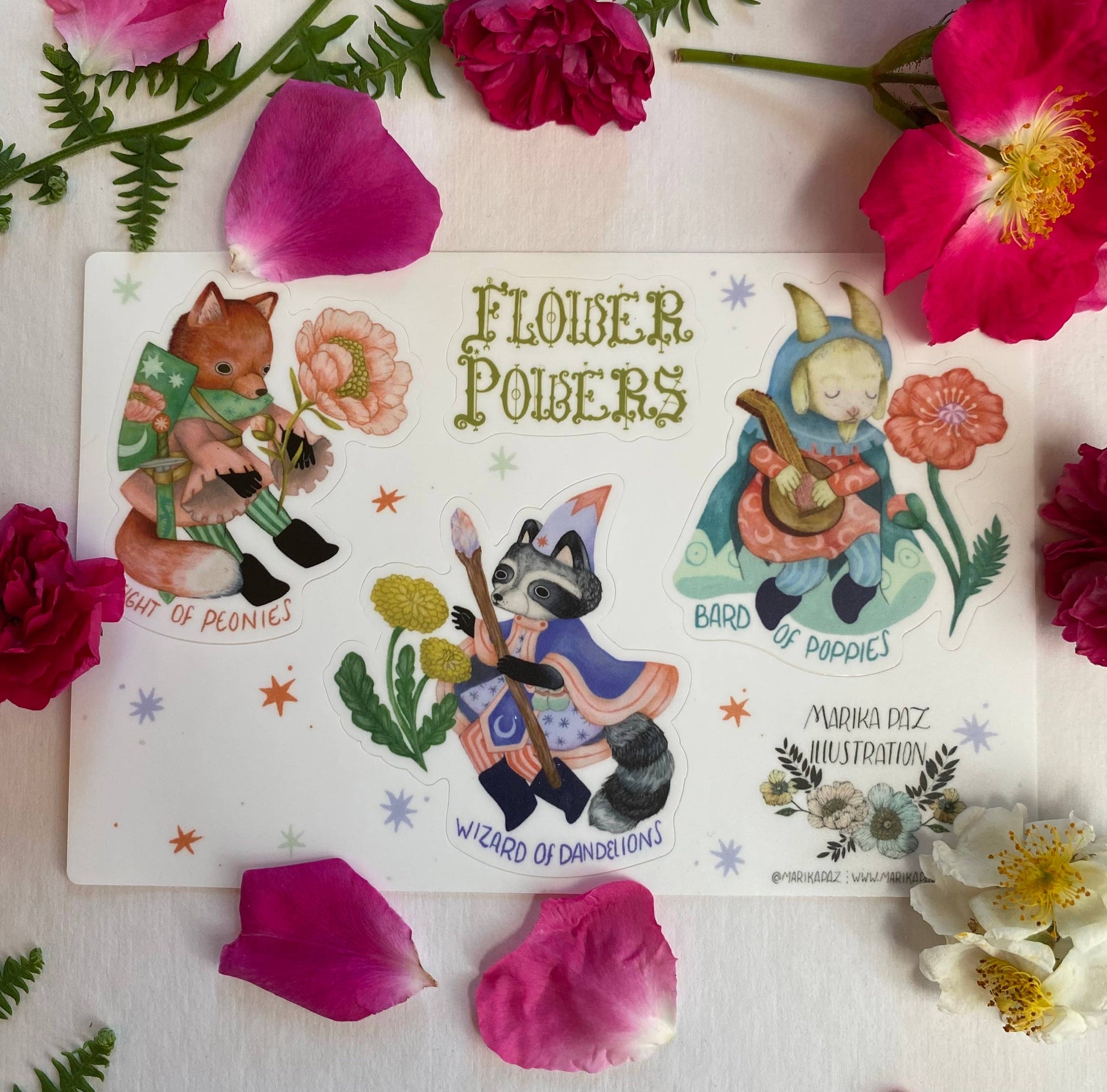Flower Powers sticker sheet comes with four kiss-cut stickers.