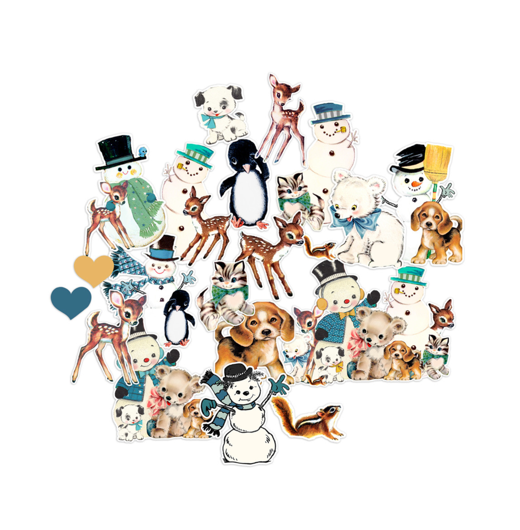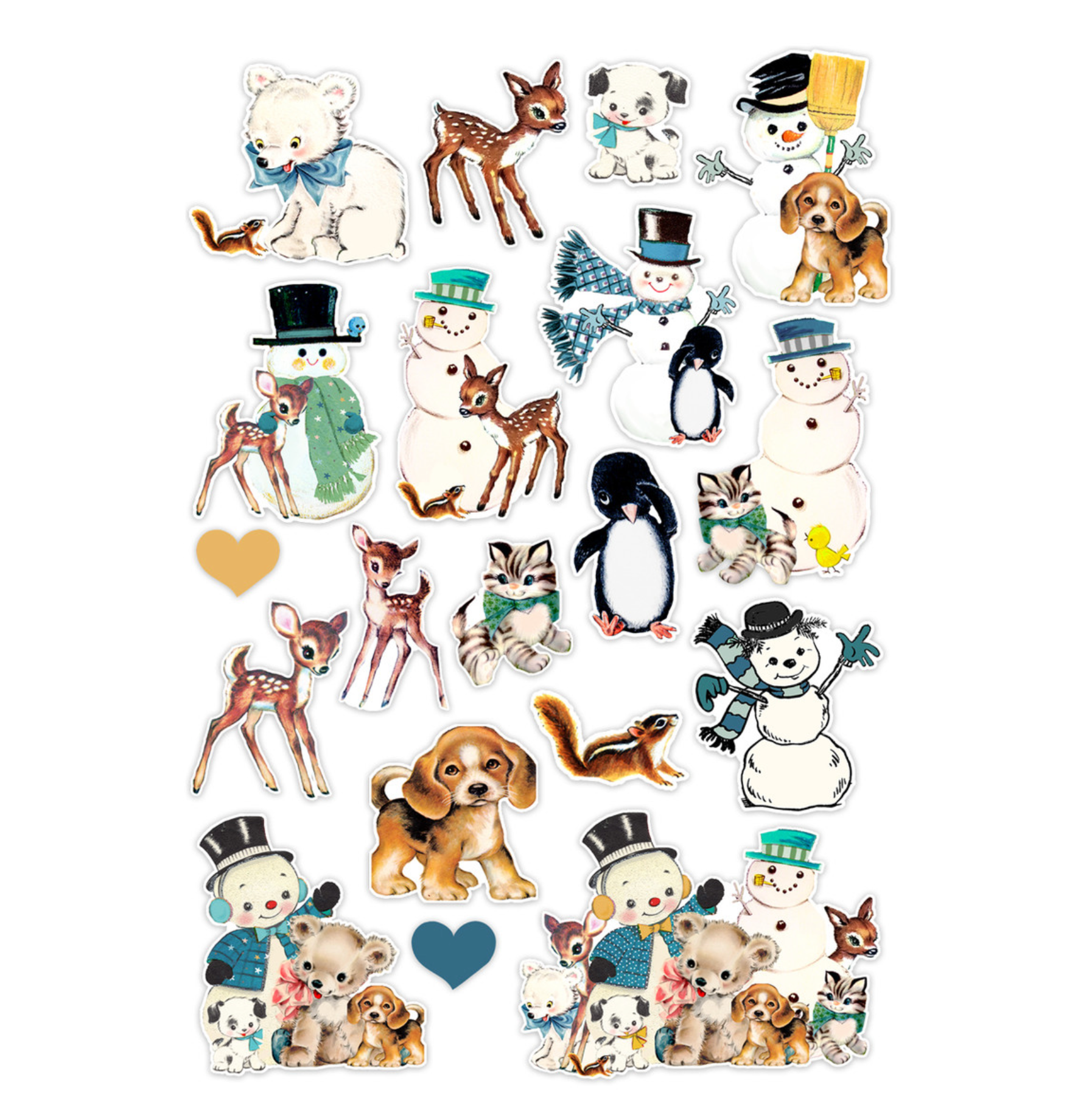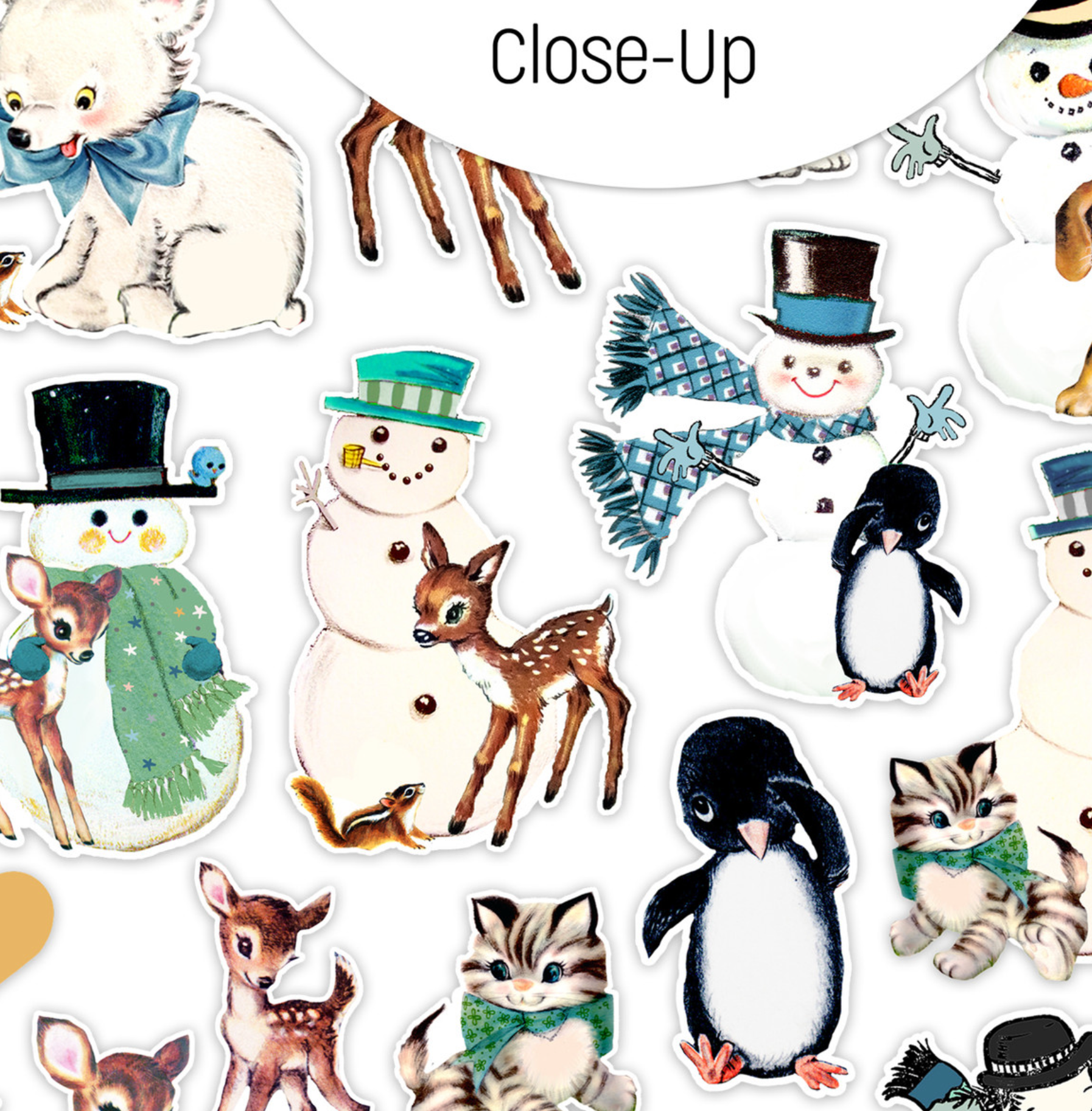 Adorable reproduction vintage snowmen & animals from 1950-1960 greeting cards. Great for scrapbooking, card making, junk journals and more . .