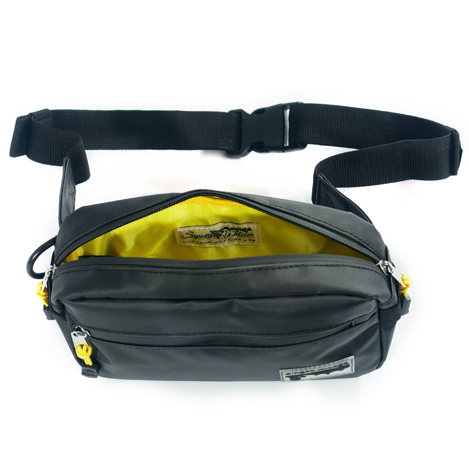 -3 zippered compartments with custom Sipsey Wilder easy pull tabs