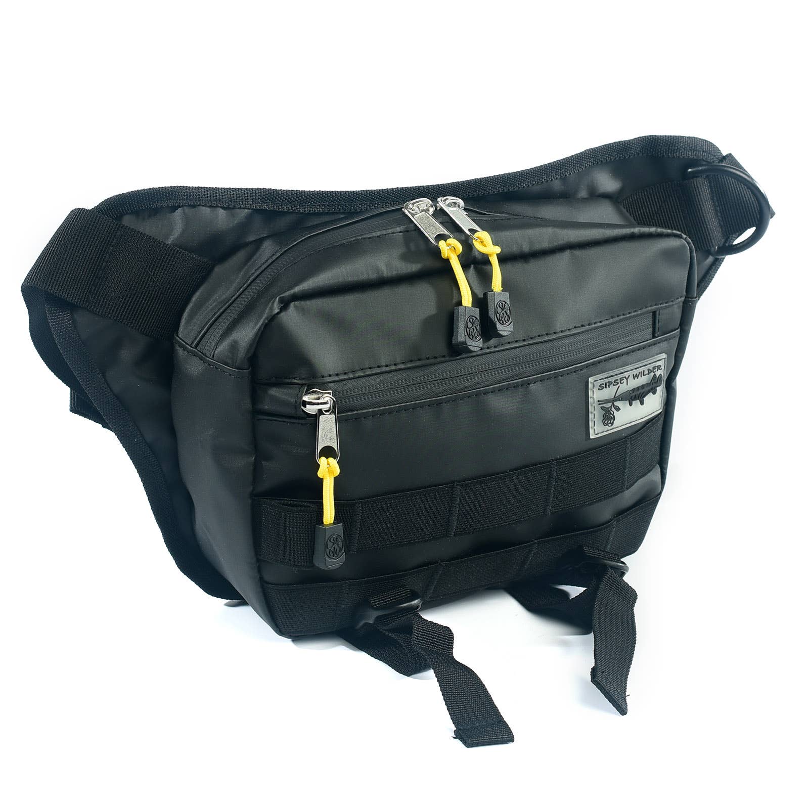 -3 zippered compartments with custom Sipsey Wilder easy pull tabs