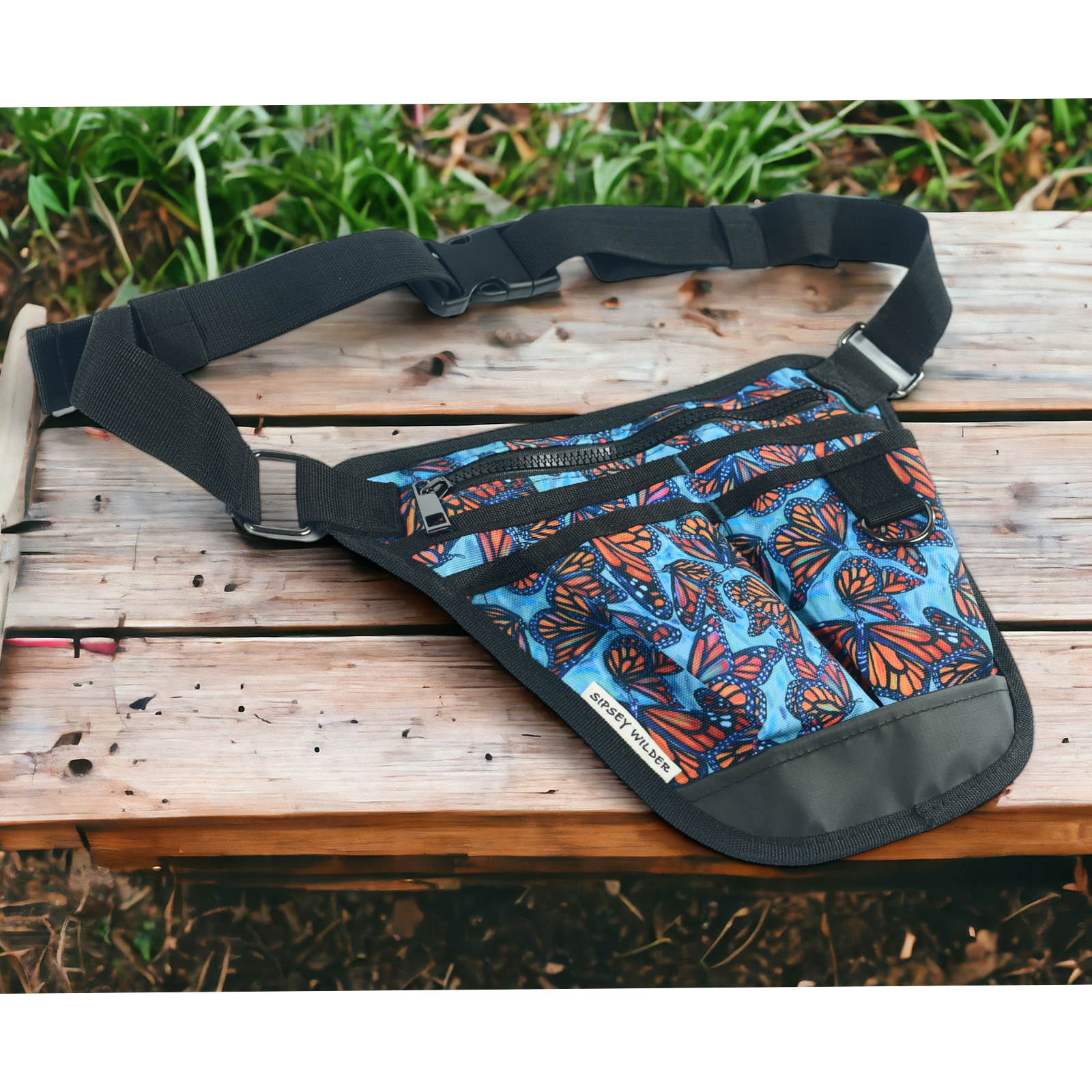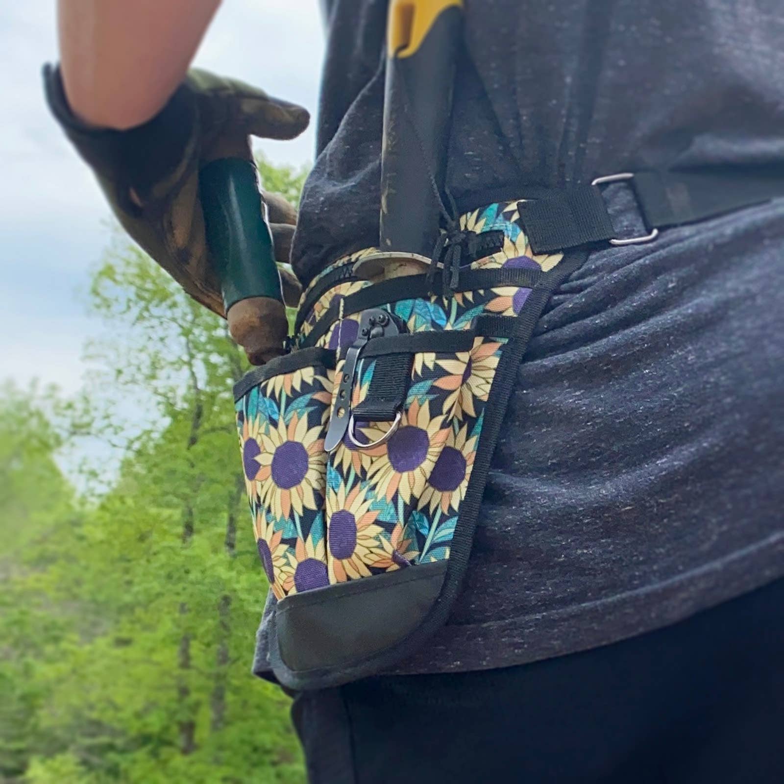 This versatile and utilitarian belt hip pack will make the perfect side bag for gardeners and florists but is also a great fit for a daily work bag for many professions! There are 4 open compartments for tool organization and a zippered pocket for your phone or other items you need to secure. My mother has been using hers to work in our warehouse! She likes to keep her phone in one of the open pockets and also her box cutter, scissors, sharpie and a pen. It was also be a useful bag for vet techs, nurses, stage designers, servers, artists, massage therapists and more!
