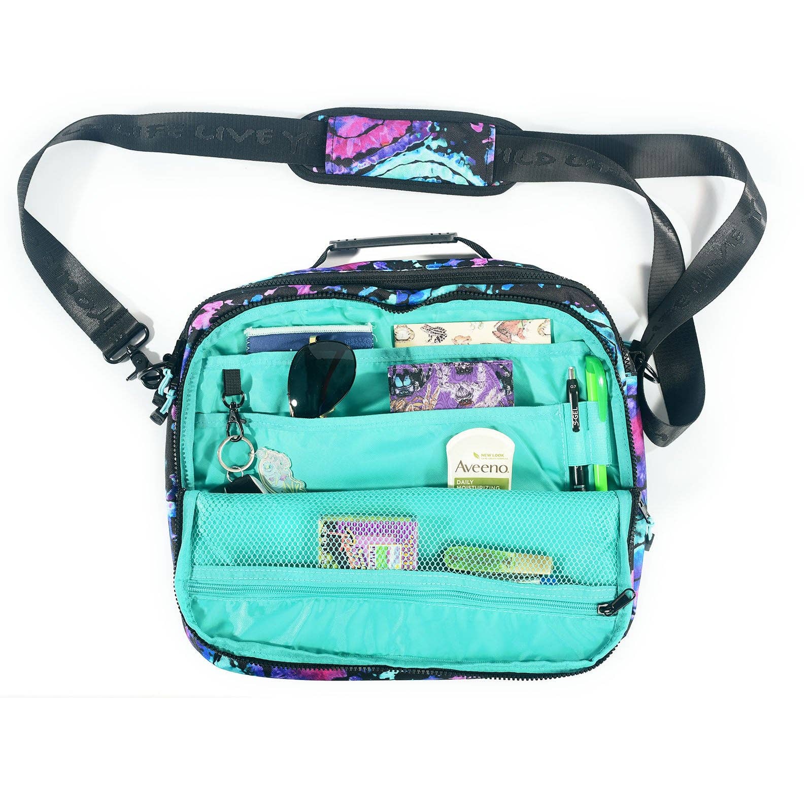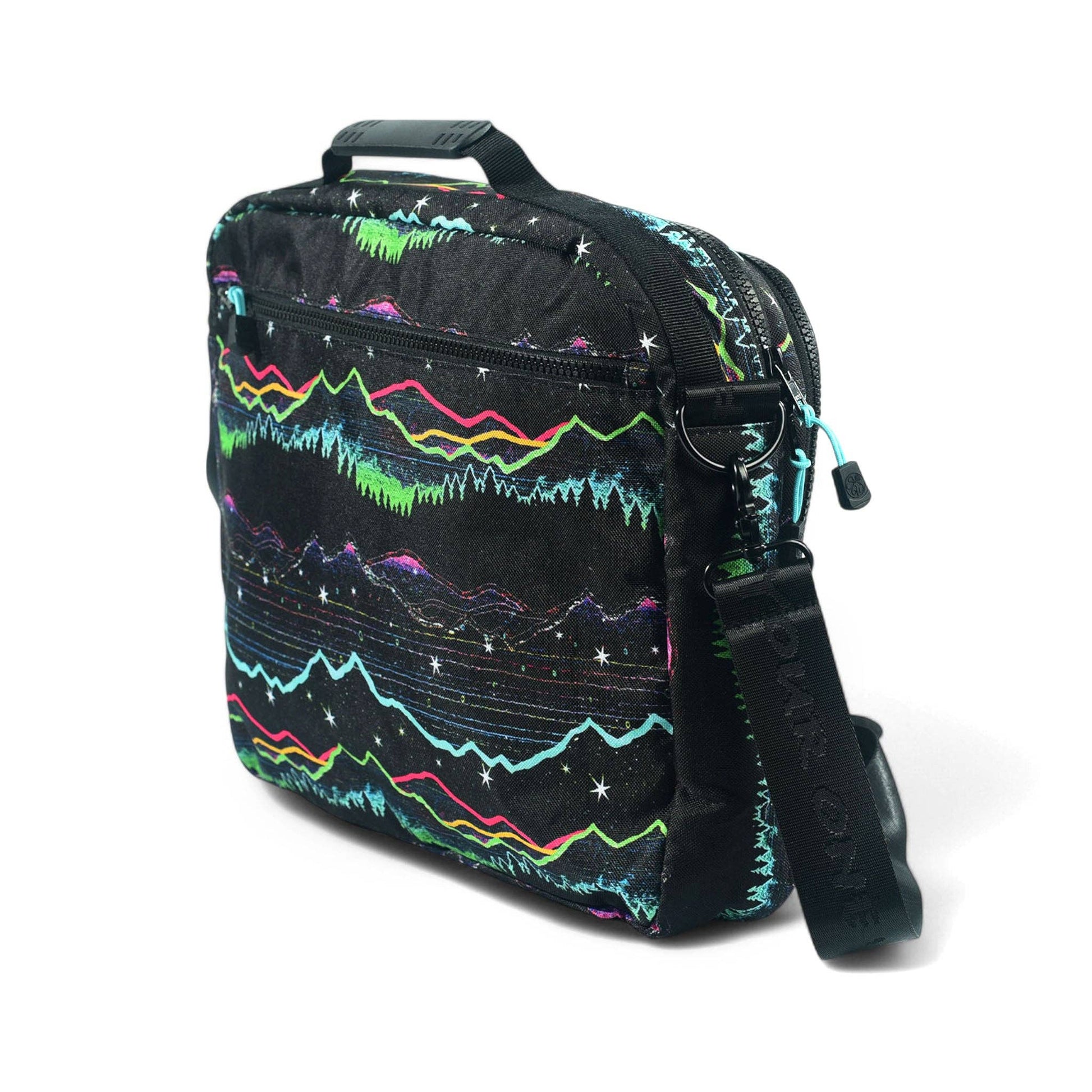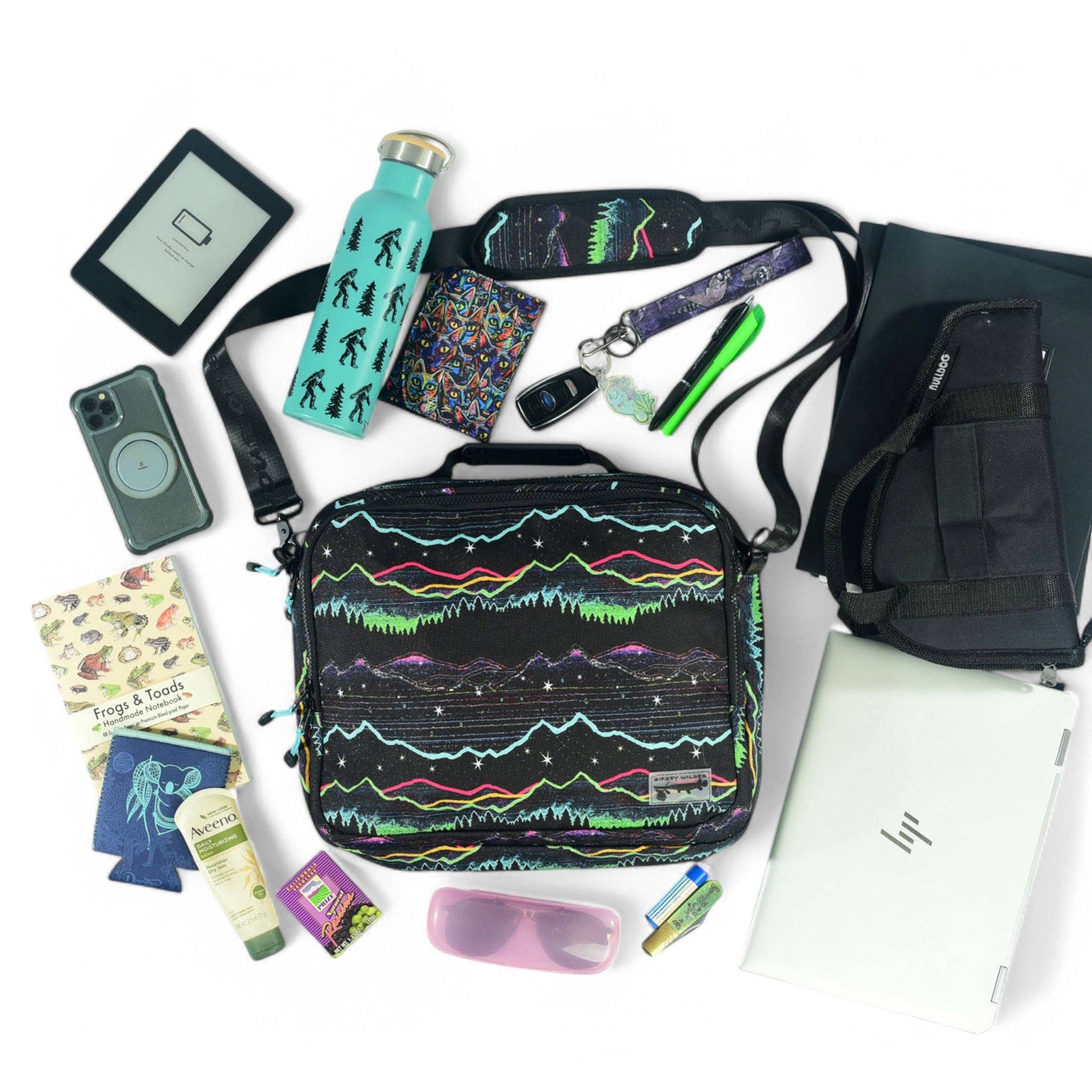 This convenient crossbody will be perfect for toting your laptop or tablet! Fits up to a 13" device! There is plenty of room inside for your devices, notebooks, a water bottle, wallet, snacks and other essential items. Attach your keys to the included key clip!