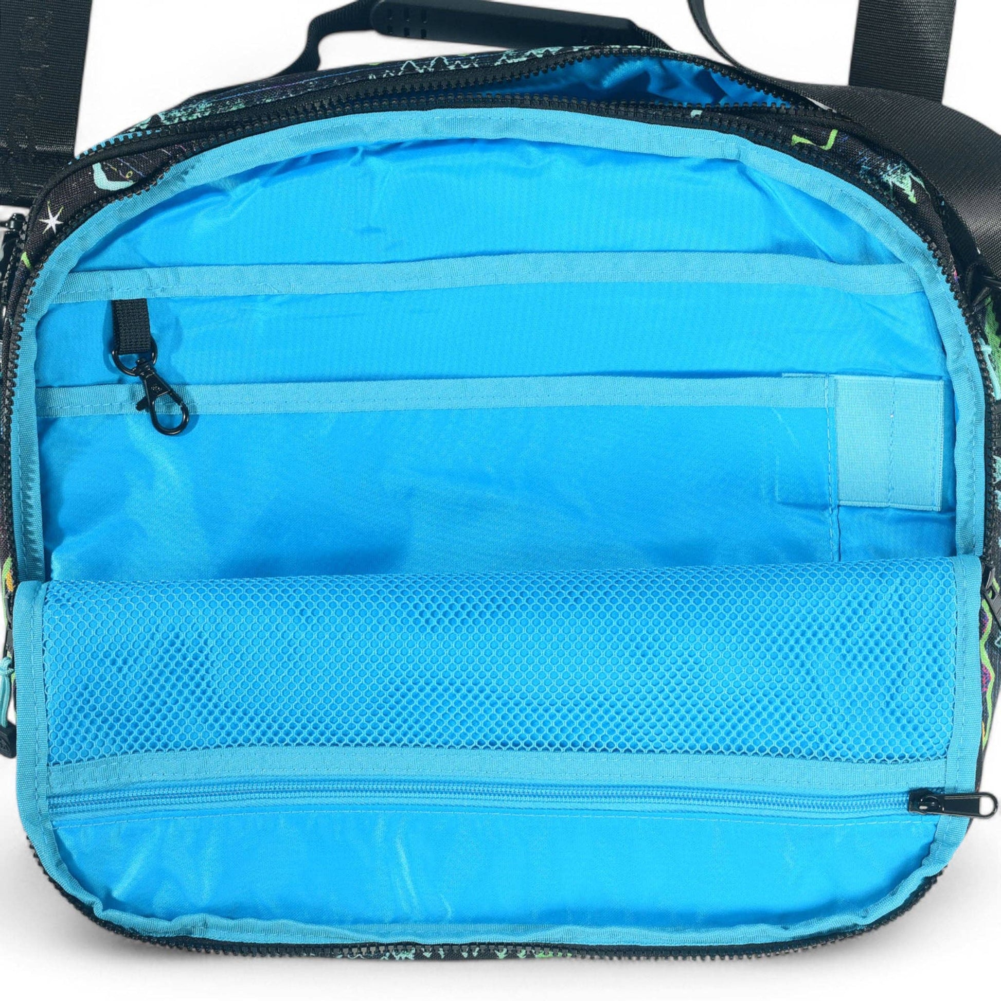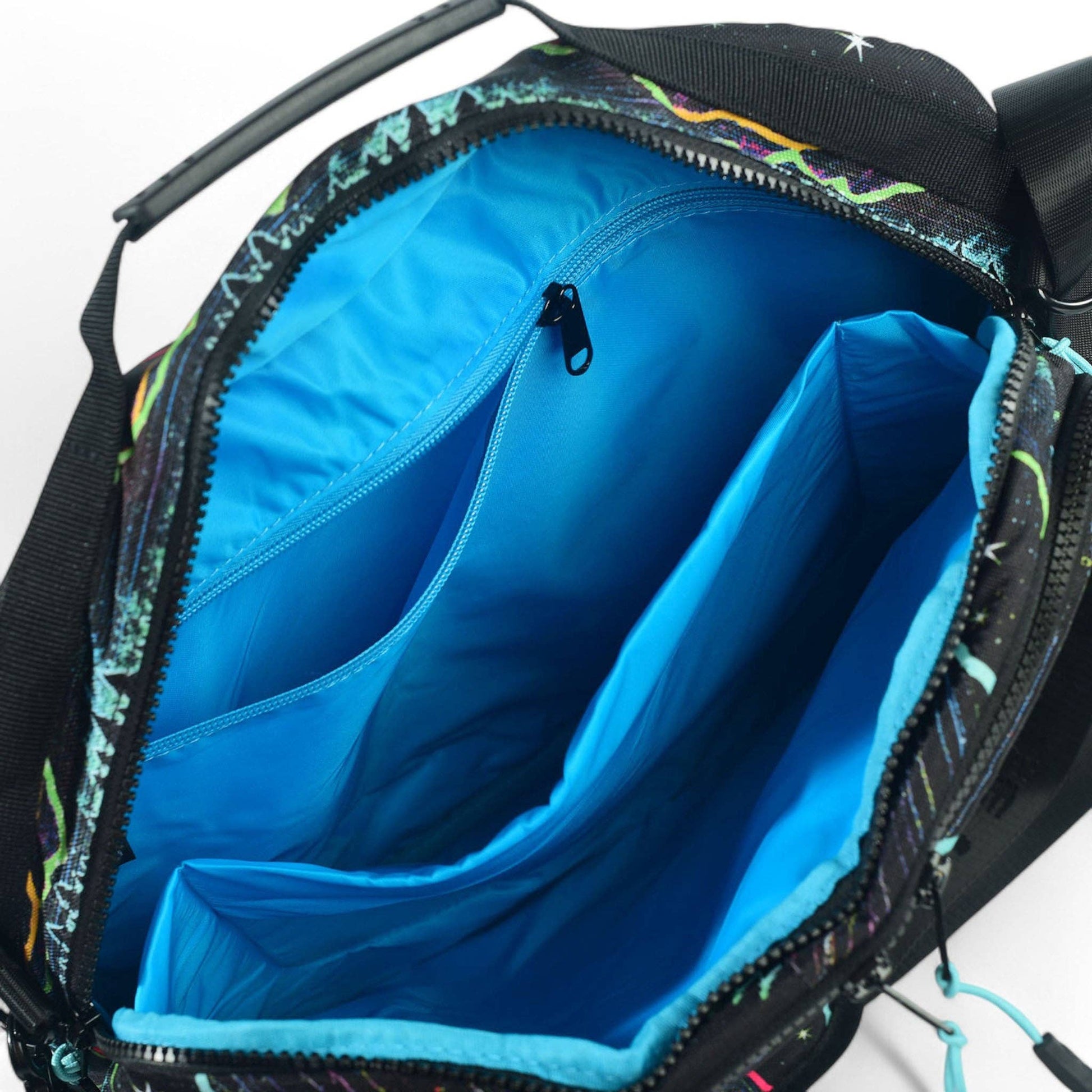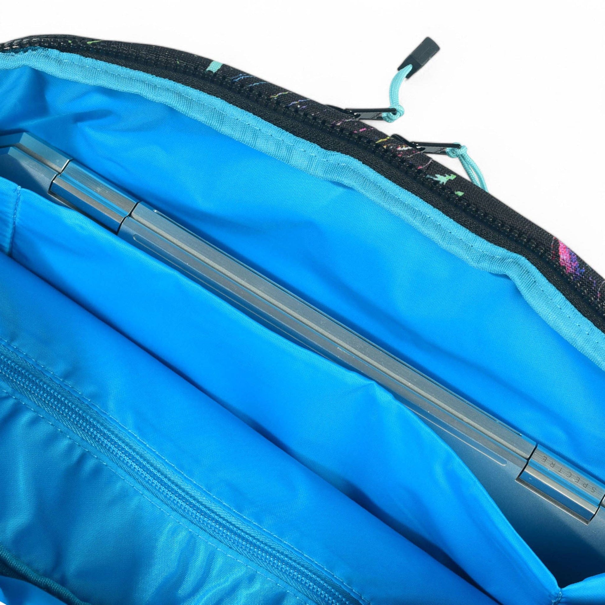 This convenient crossbody will be perfect for toting your laptop or tablet! Fits up to a 13" device! There is plenty of room inside for your devices, notebooks, a water bottle, wallet, snacks and other essential items. Attach your keys to the included key clip!