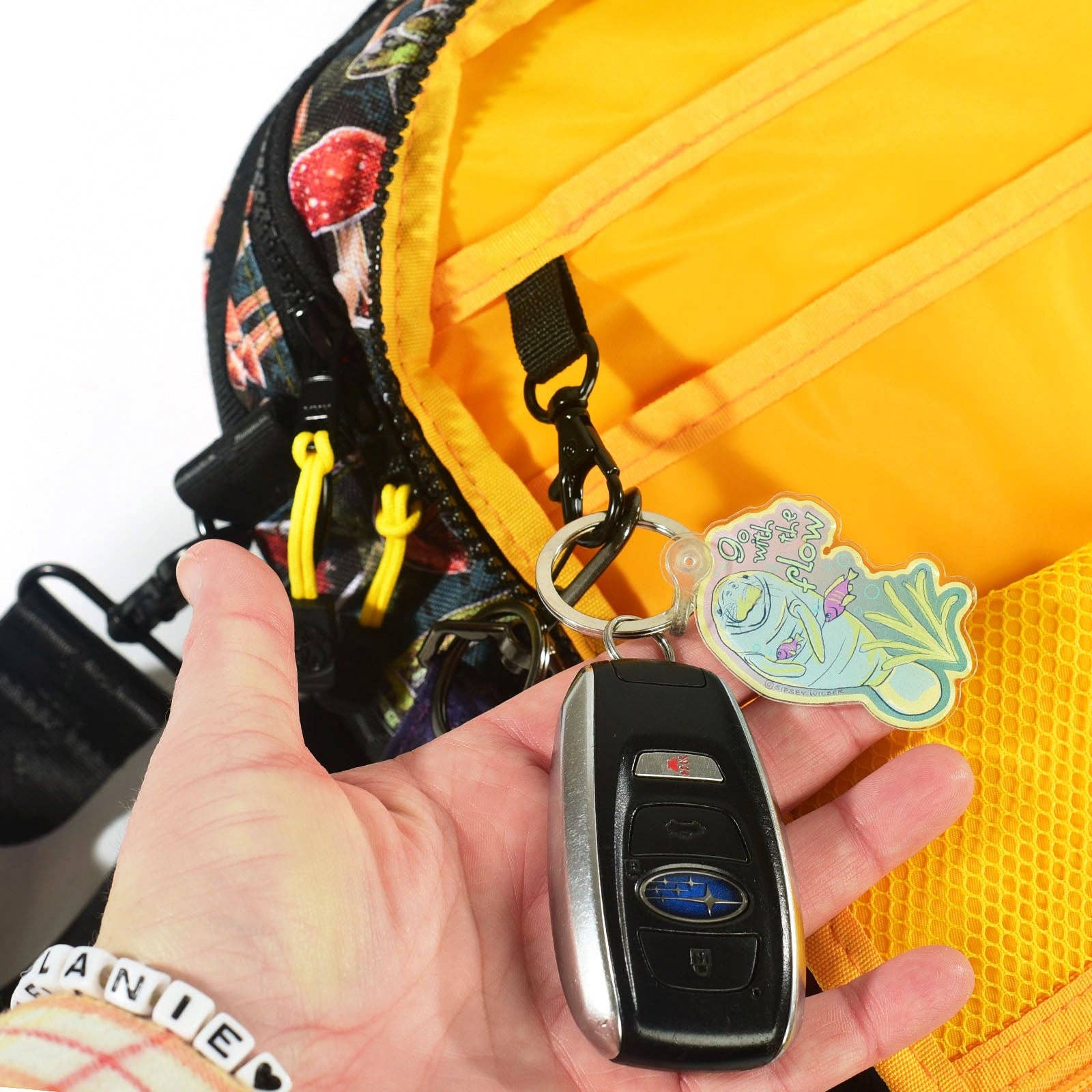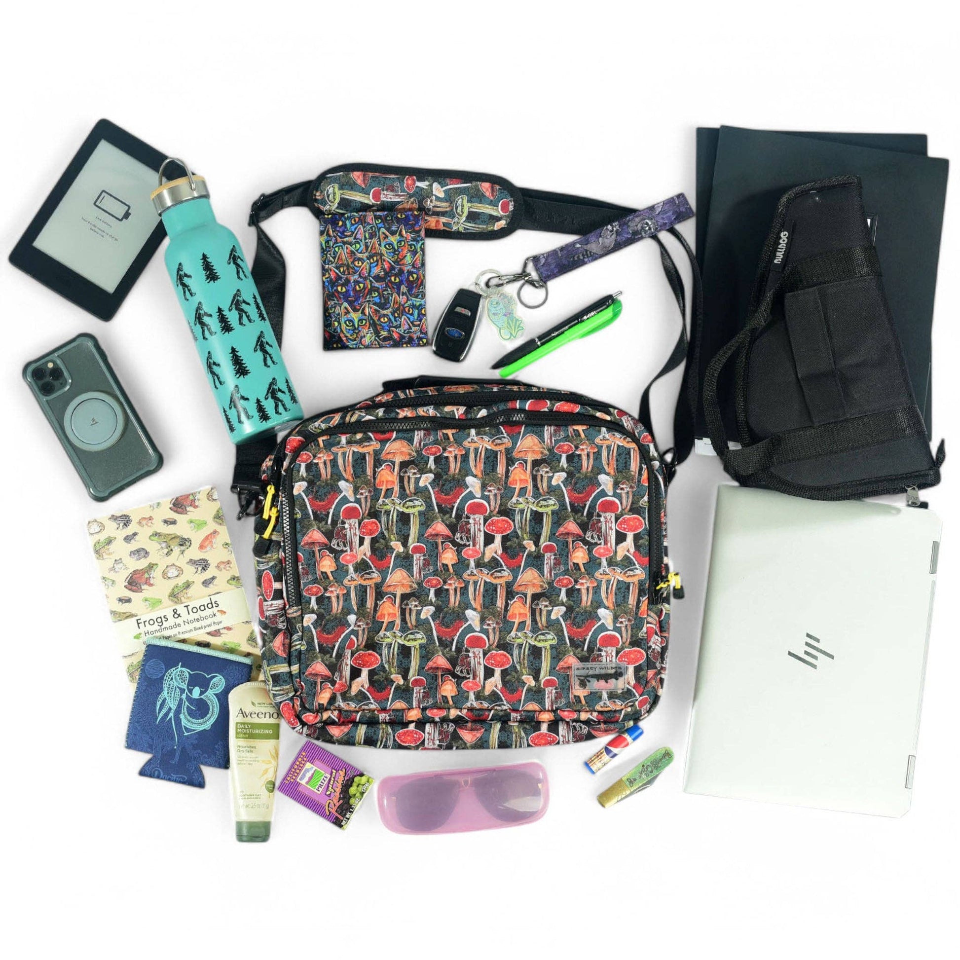 This convenient crossbody will be perfect for toting your laptop or tablet! Fits up to a 13" device! There is plenty of room inside for your devices, notebooks, a water bottle, wallet, snacks and other essential items. Attach your keys to the included key clip!