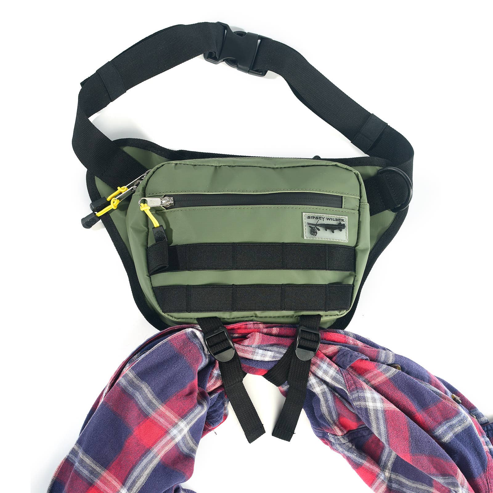-3 zippered compartments with custom Sipsey Wilder easy pull tabs