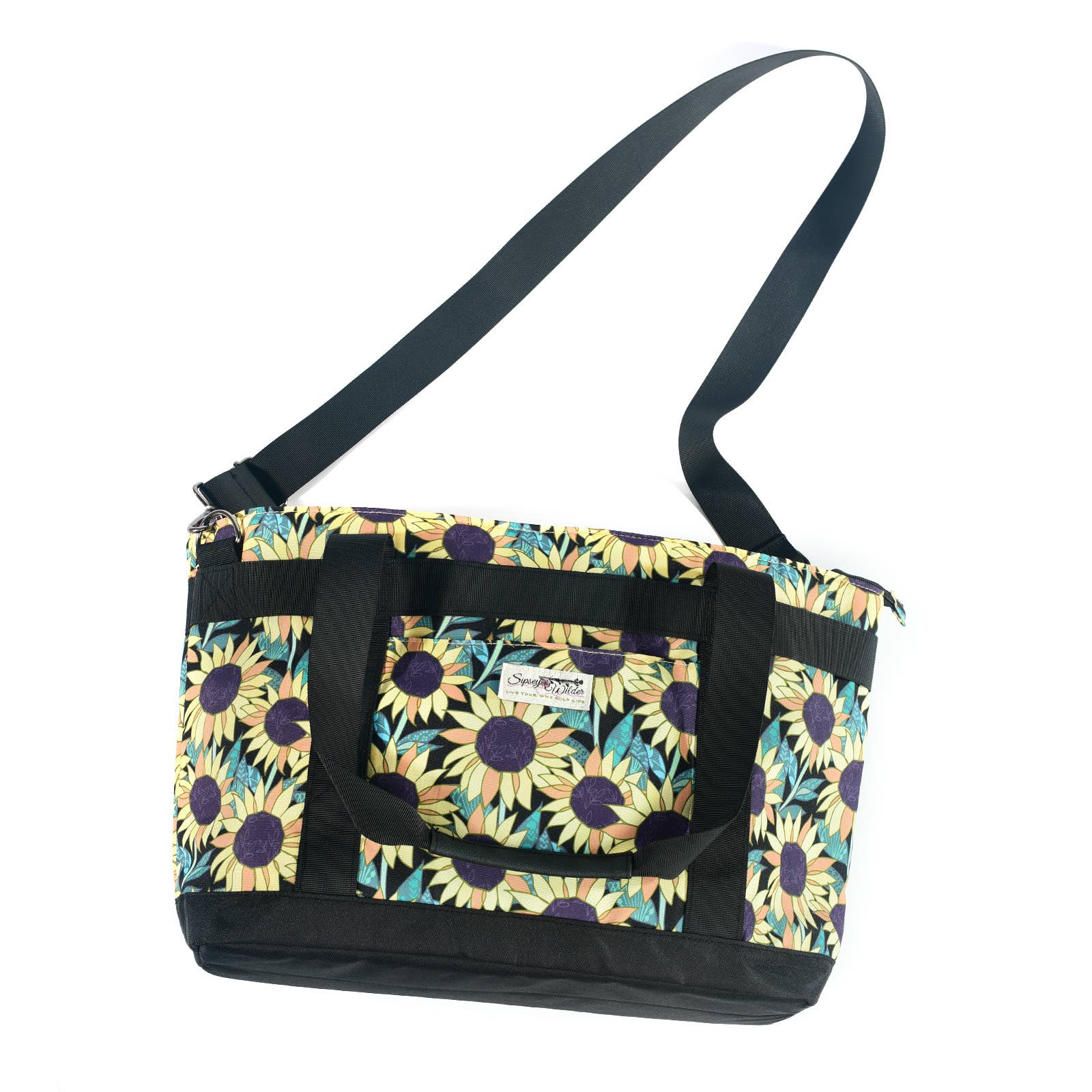 -Bag measures 12" tall x 15.5" wide x 6" deep with 10" non-slip shoulder straps