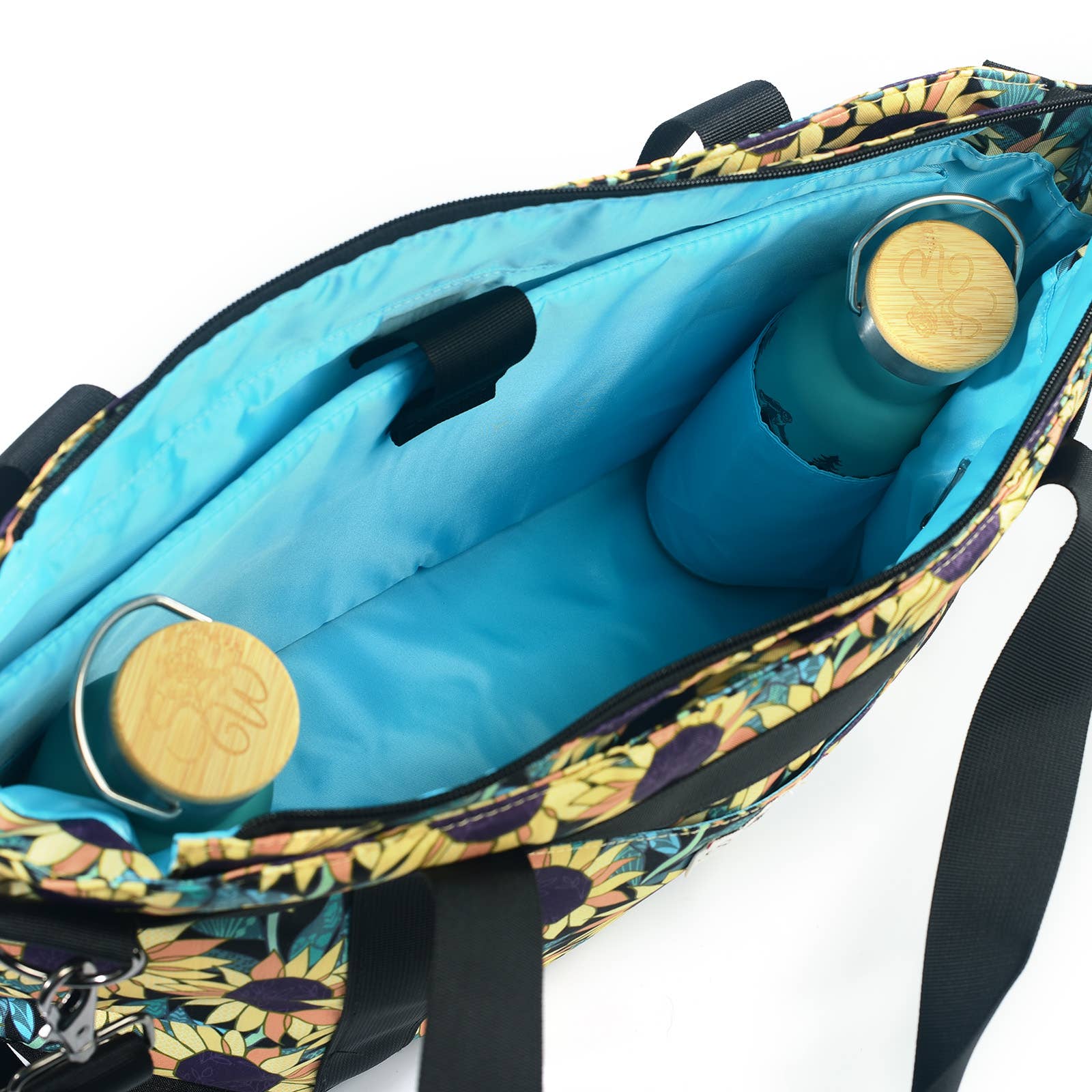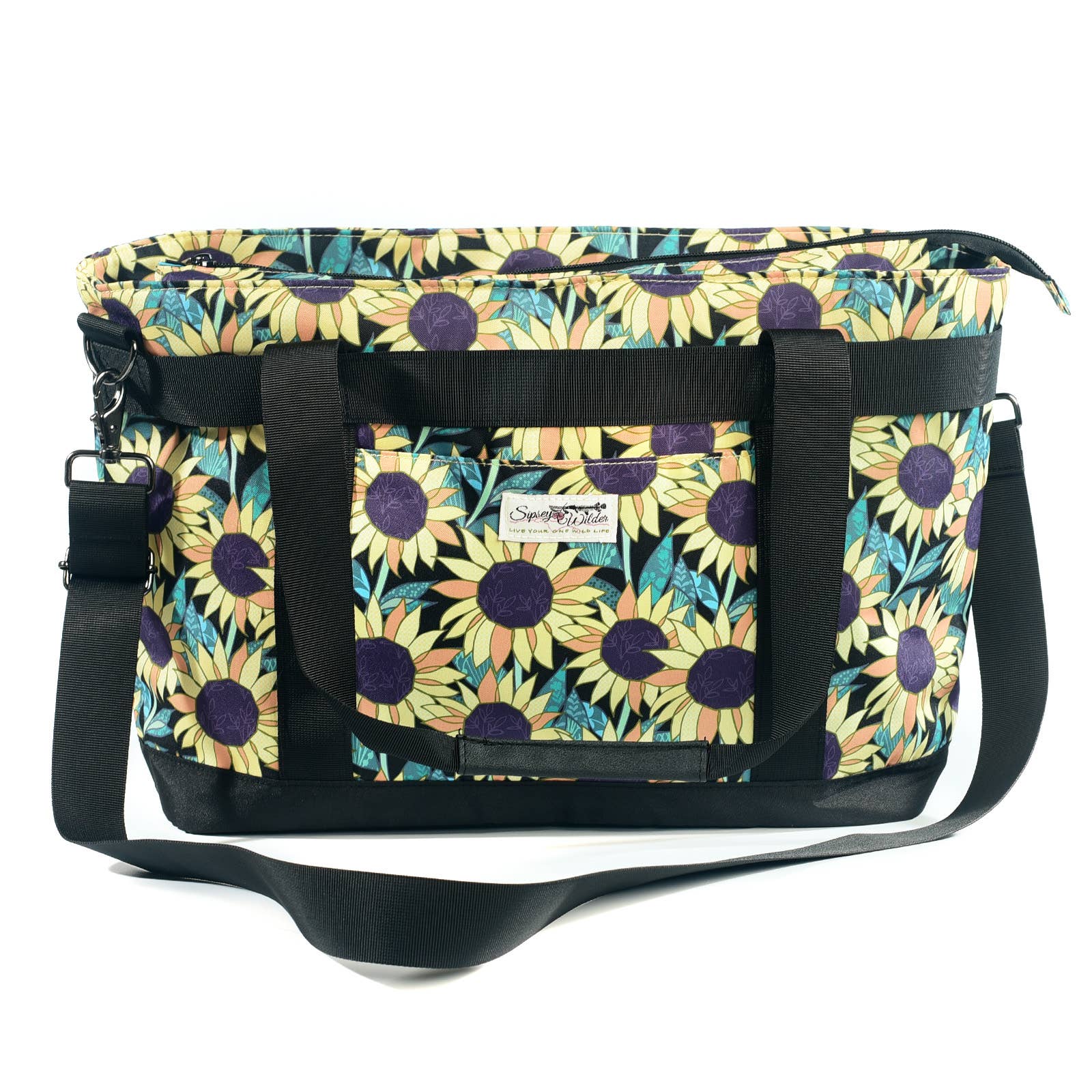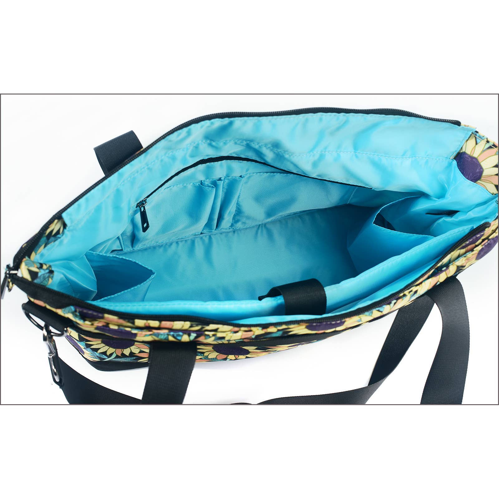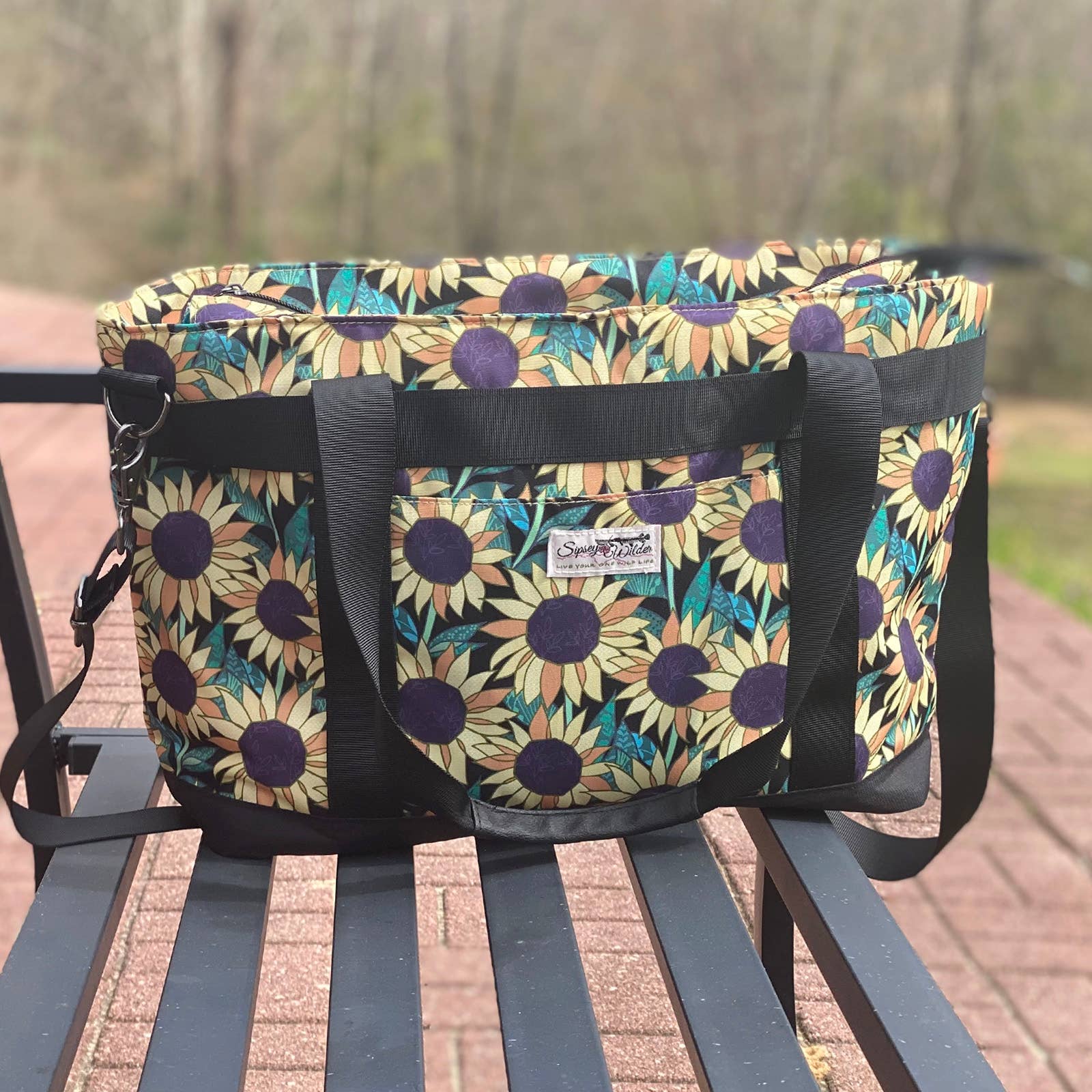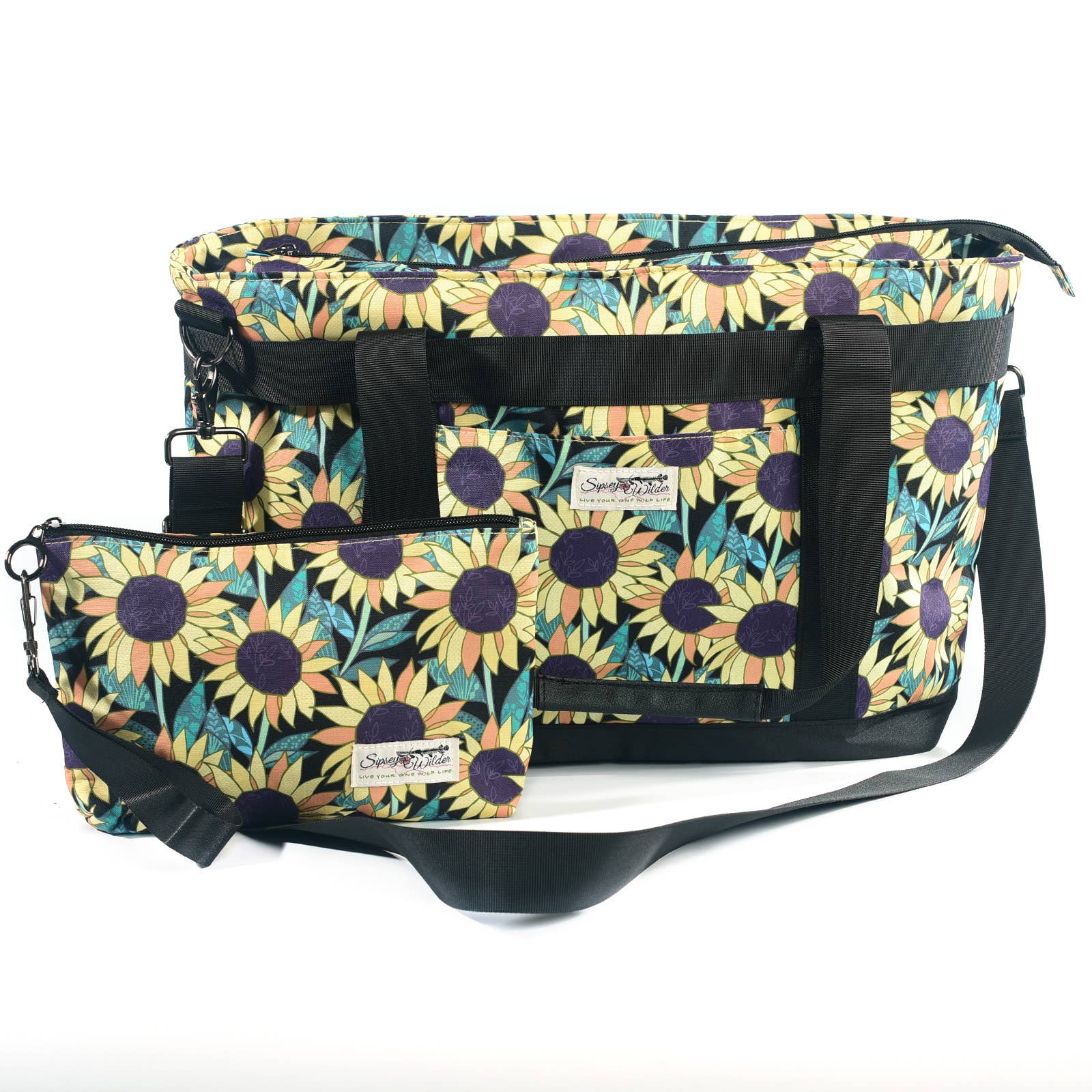 This large all purpose tote will be the perfect companion for traveling adventures or day trips. Includes a padded laptop/tablet sleeve, inner organizational pockets and outer front pockets. A matching 6.5 x 10 inch organizer/wristlet also available as an add-on!