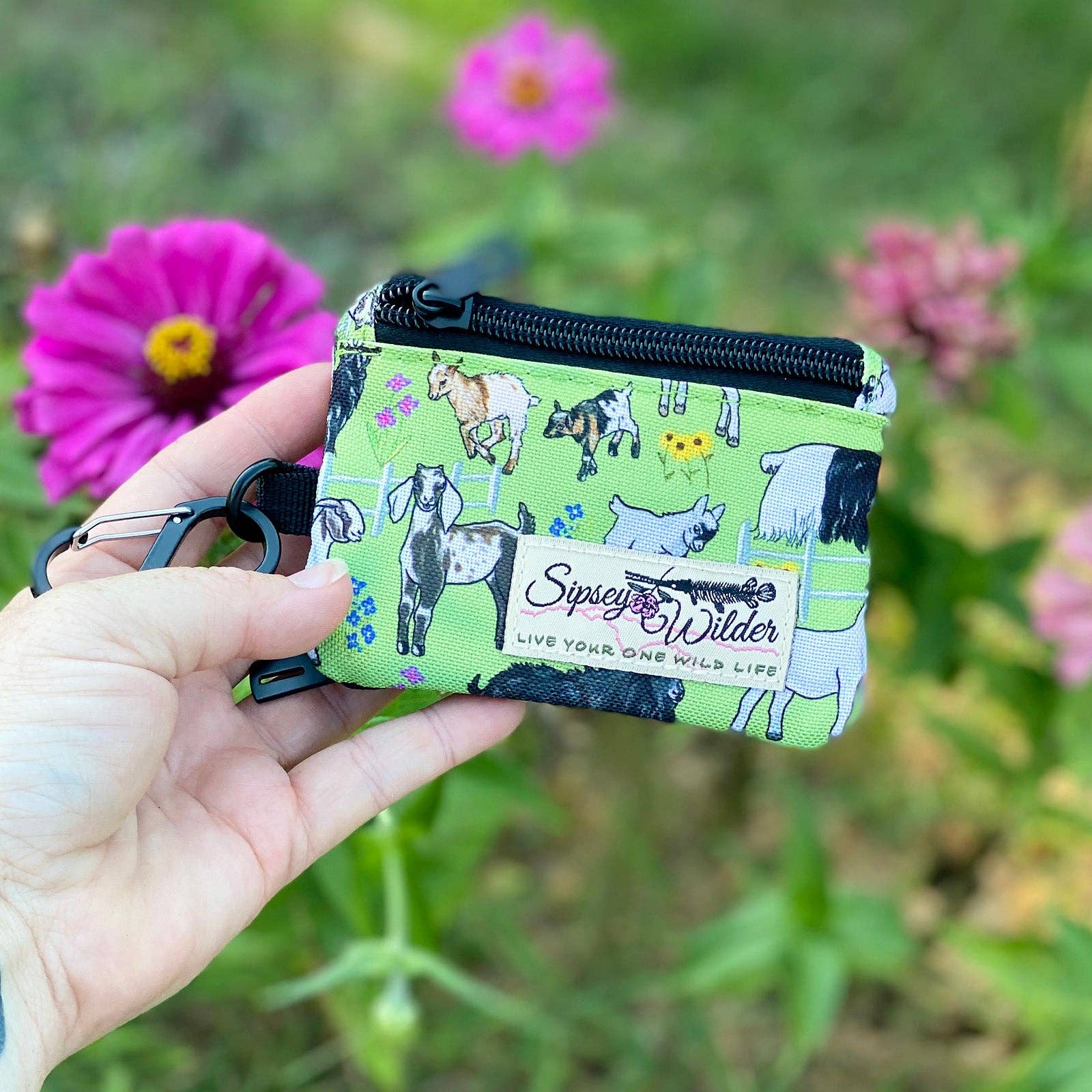 This two-sided little wallet is just what you need to keep it light and carefree. Two zipper pockets on opposite sides to hold your change, cards or keys. There is also a small zipper pocket on the inside. The included S-Biner clip will make for quick clipping to a bag or your belt loop. Easily slips in your back or front pocket for fast access.